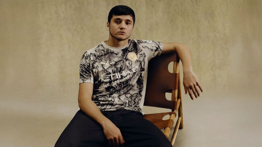 Manchester City defender Abdukodir Khusanov models the club's new kit released to mark the Year of the Fire Horse. Manchester CityEdito...