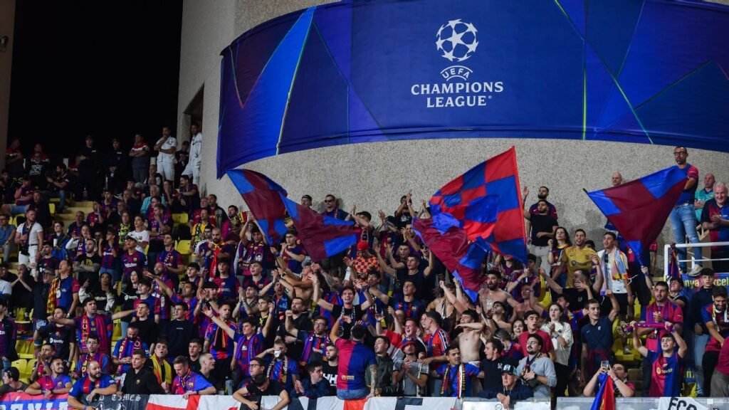 Sep 27, 2024, 05:35 AM ETBarcelona have been banned from selling tickets to their fans for their next Champions League away game after ...