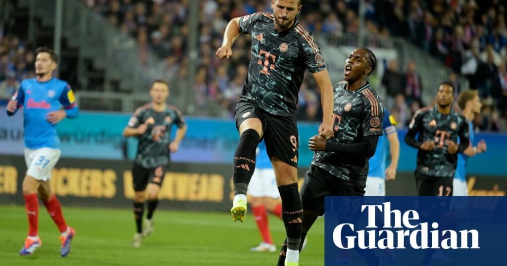 Bayern Munich’s Harry Kane scored a hat-trick as they won 6-1 at promoted Holstein Kiel on Saturday to lead the Bundesliga after three ...