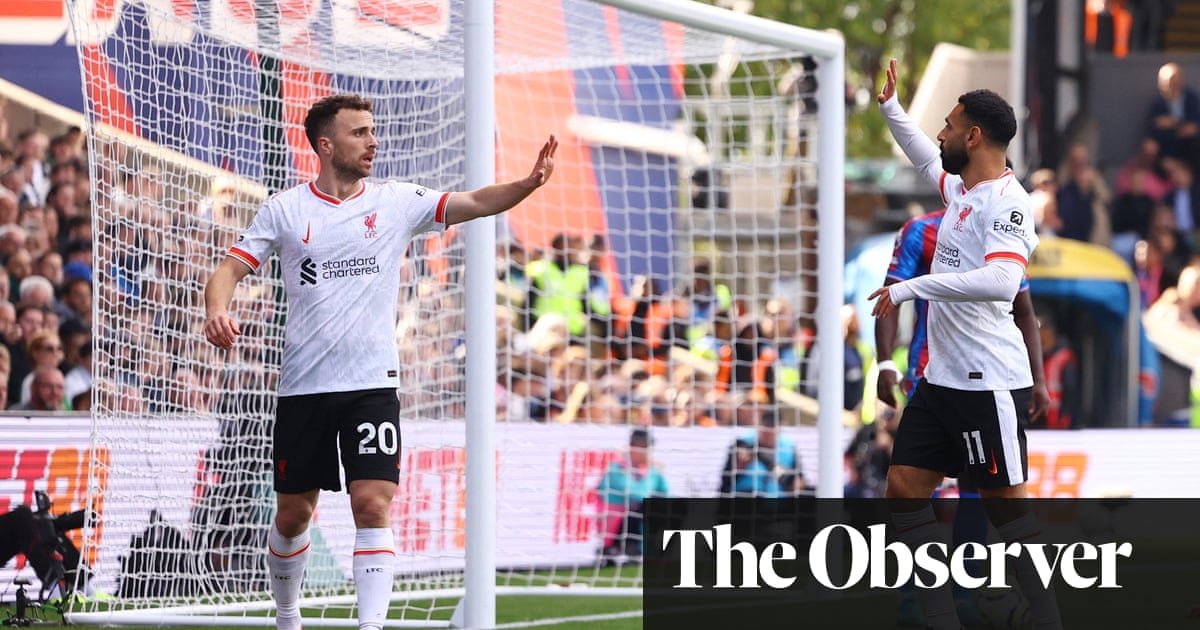 The only goal came from a beautifully simple move with eight minutes gone. Kostas Tsimikas played a straight through ball inside the left-back channel as the Palace defence dithered. Cody Gakpo put the cross into the most logical space. Diogo Jota produced a classic poacher’s diagonal run and finished with a cool little poke of the toe.