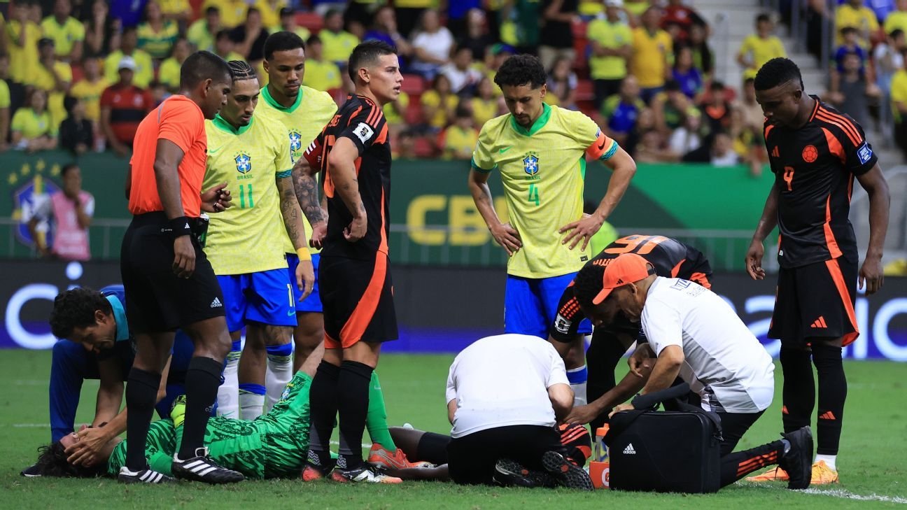 Alisson collided with Colombia defender Davinson Sánchez during Brazil’s 2-1 win, with both players forced off the pitch in the 78th minute.