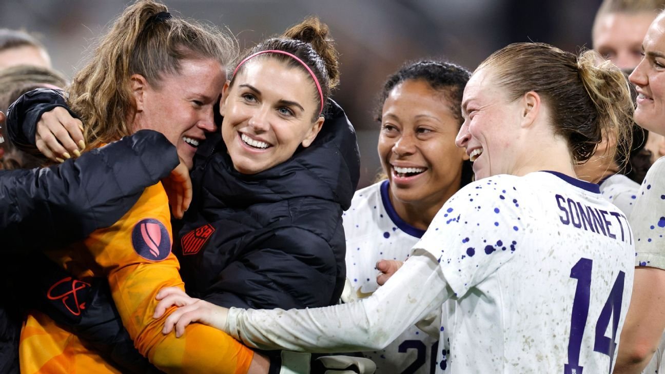 Former USWNT forward Alex Morgan and goalkeeper Alyssa Naeher, who retired from international duty last year, will be honored prior to games on Oct. 23 in Chester, Pennsylvania, and on Oct. 26 in East Hartford, Connecticut, respectively.